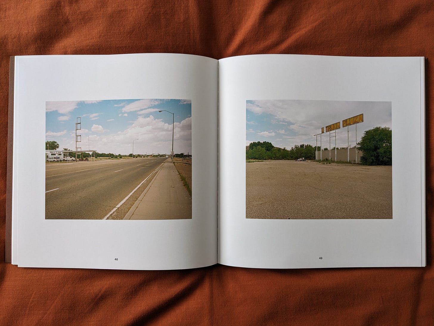 The photographs in this book have a noticeable attention to smaller details spotted from the car and captured on the roadside - weathered buildings, roadside relics, and stretches of land and roads that feel untouched by time.